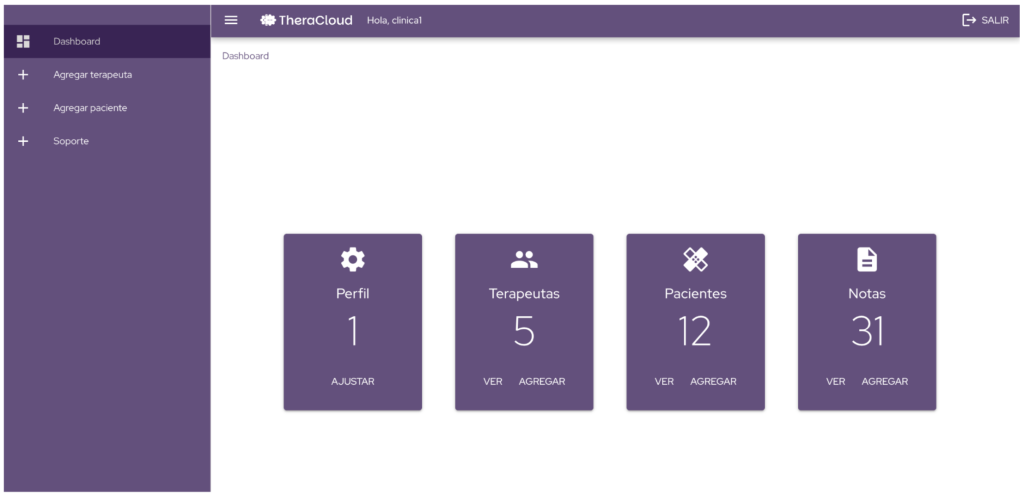 En el dashboard principal, dar clic a “VER” en el apartado de “Terapeutas”