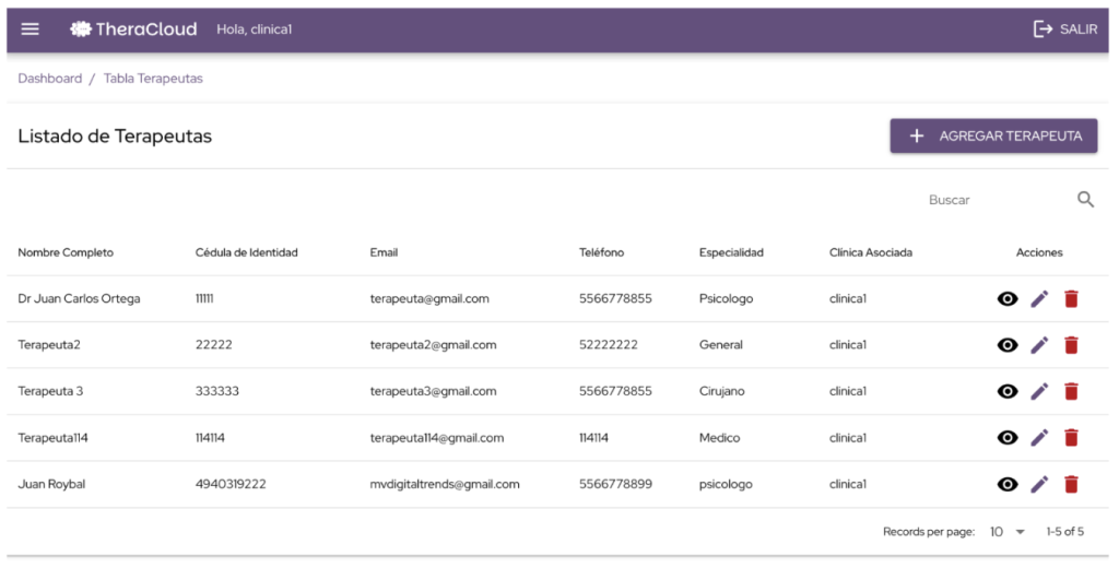 Eso te redirigirá a una página con todos los terapeutas asociados a la clínica: