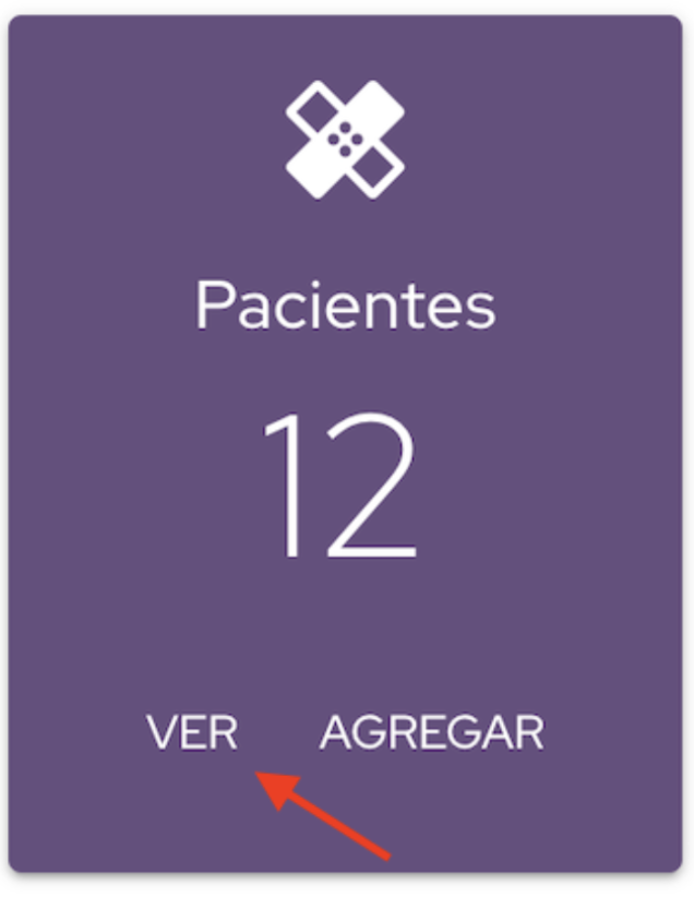 En el dashboard principal podrás encontrar el boton “VER” en el apartado de “Pacientes”.