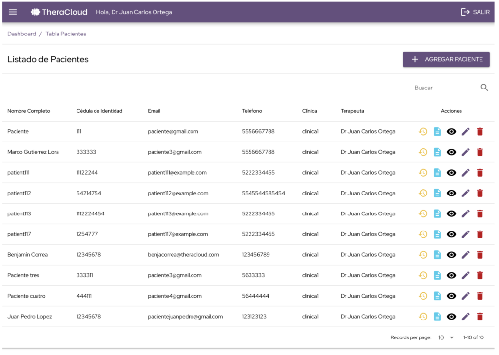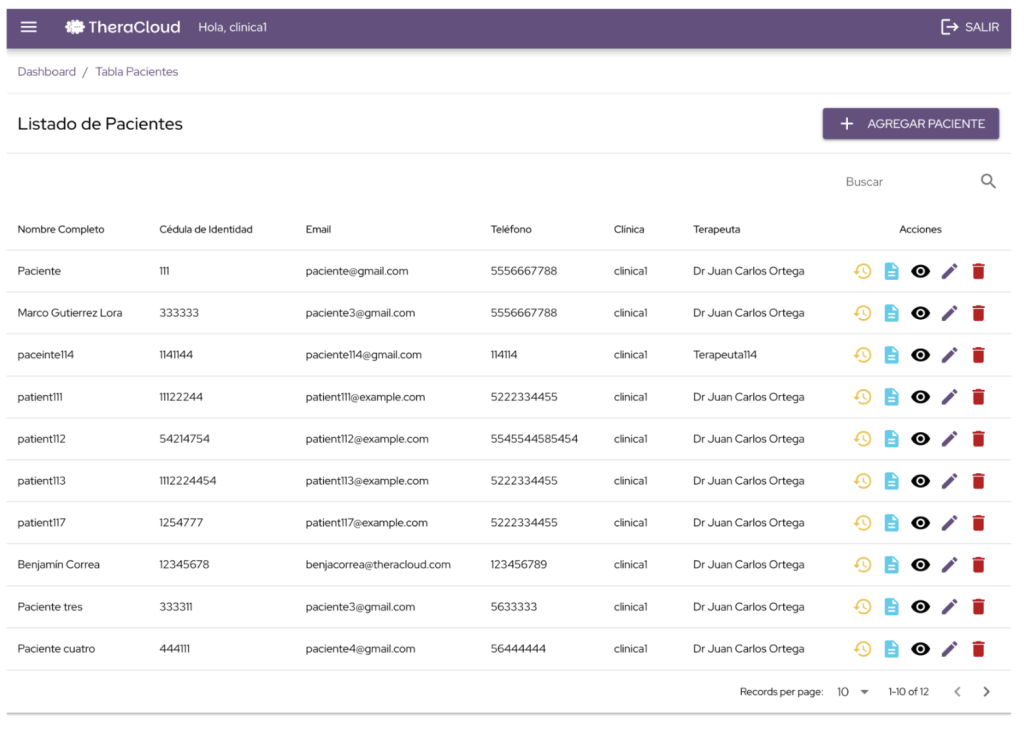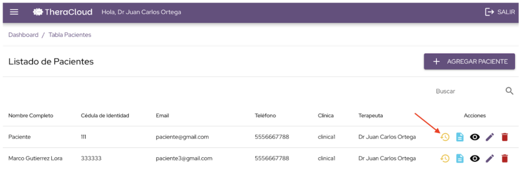 Ese botón te llevará a una página con todos los pacientes asociados a la clínica: