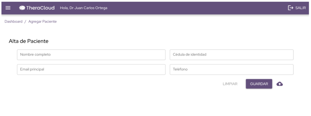 En el menú de la izquierda está la opción de “Agregar paciente”. El mismo te redirigirá a una serie de campos a completar.