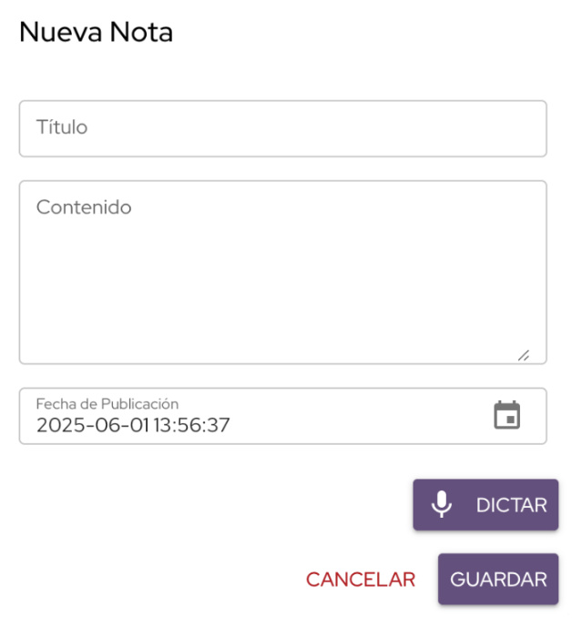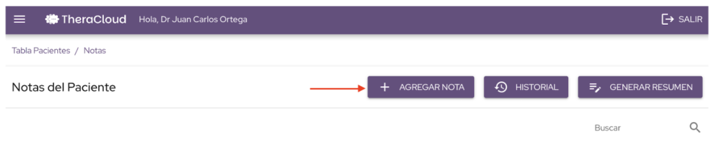 Luego haz clic en “AGREGAR NOTA”, boton superior derecho.